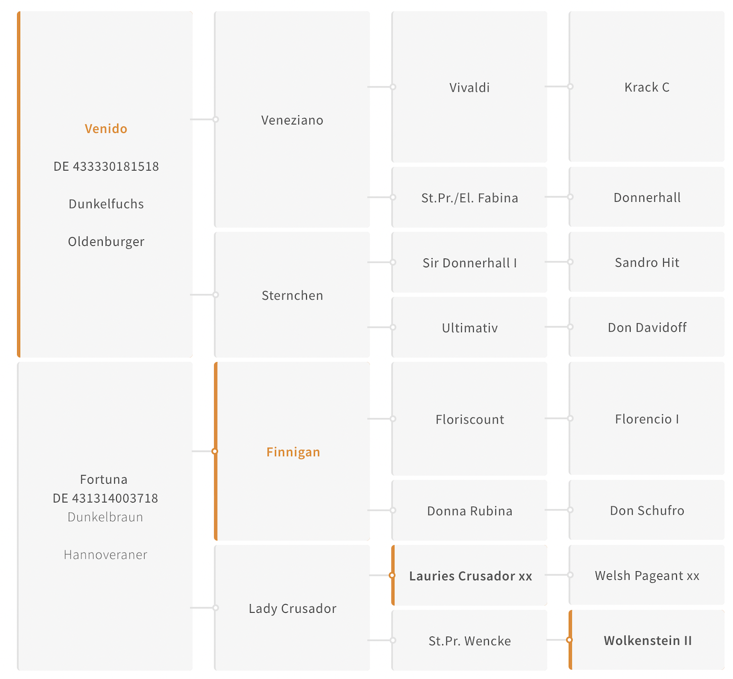 Abstammung: Venido - Finnigan - Lauries Crusador xx - Wolkenstein II